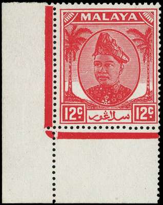 1952 12c scarlet lower left corner example with watermark inverted, unmounted o.g. SG 99w, £1300