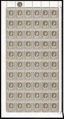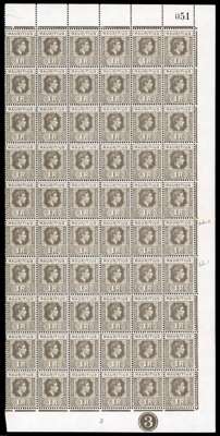 1948-9 1r late printing on chalky paper, left and right panes, Plate 3. Unmounted o.g., some stamps (about 10) affected by slight foxing, this fortunately not including the R6/1 RP battered ‘A’. Unusual. SG 260c, ca, £7545