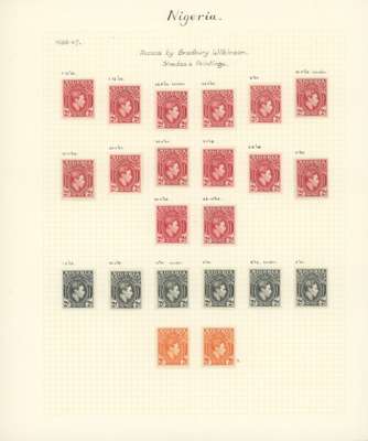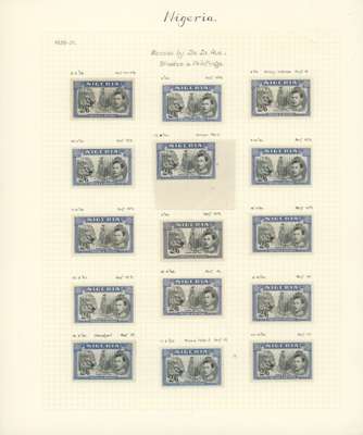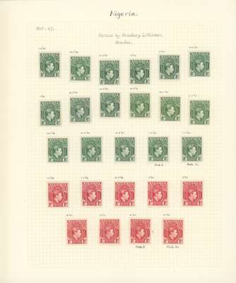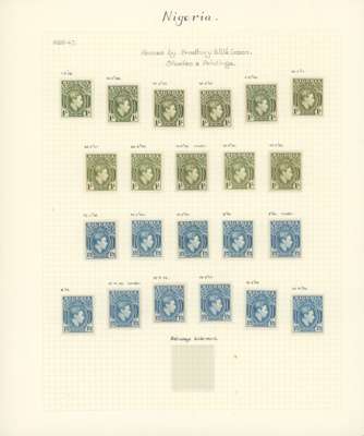 1938-51 printings collection on leaves, beautifully written up on Godden leaves; ½d (17), 1d carmine, 1d red (8), 1d purple (19), 1½d (13), 2d black (6), 2d rose-red (14), 2½d (2), 3d blue (7), 3d black, 4d orange, 4d blue, 6d (13), 1/- (11), 1/3d (11), 2/6d (15) and 5/- (10), all listed perforation and shade variants, all neatly mounted with printing dates, fine o.g. Ex Cooper. S.G. 49-59c