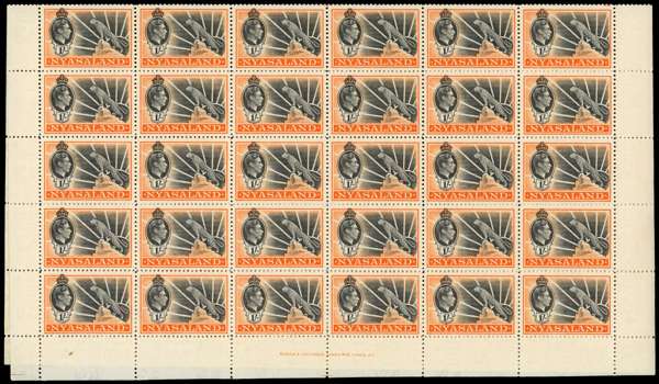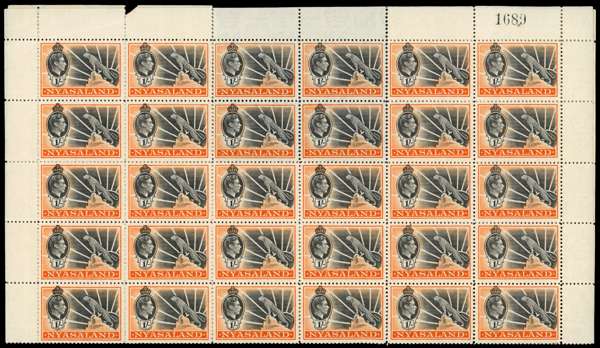 Nyasaland SG 130-138 sheets and multiples mint