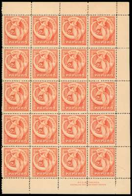1932-40 ½d, 1d, 2d and 4d mint blocks of twenty each with McCracken imprint, the 2d with gum toned and with a small reinforcement to the selvedge, otherwise fine unmounted o.g. Scarce. SG 130-1, 133, 135