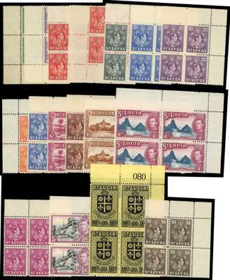 1938-48 set of seventeen in unmounted o.g. blocks of four, all corner blocks, a couple hinged on the selvedge only. SG 128a-141, £380