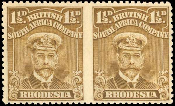 Rhodesia 1½d SG 198a horizontal pair imperforate between mint