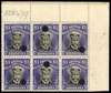 £1 Head Die IIIA. Printer's file copies block of six from upper right corner of sheet in deep grey-black and deep violet, punched holes, 152479 pencilled on selvedge. Good for these. SG 255t, AH 9