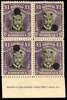 £1 Head Die IIIA. perf 14. Lower marginal imprint block of four, large part o.g., in grey-black and dull violet from Platr 3R State 1. Small punch holes, from the Waterlow file sheet, this printing only known in this form. Ex Spivack. SG 255t group, AH 11