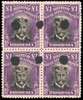 £1 Head Die IIIA, perf 14. Block of four from the file sheet with patches of o.g., small punch holes. Fine for these, ex Spivack. SG 255u