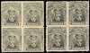 2d Head Die IIIB, perf 14, toned paper. Two blocks of four, respectively in ‘grey-black and grey-black’ and ‘grey-black and grey (towards brownish)’, good o.g., one stamp with small foxed spot on reverse. Excellent shade contrast. SG 256