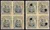 2d Head Die IIIB, perf 14, toned paper. Black and brownish grey block of four, o.g., hinged on the upper pair only; and a punched block of four from the printers' archive, positions 27-38, one stamp with a missing perf. SG 256d