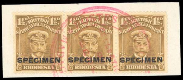 Rhodesia SG 198s 1½d Specimen 'Madagascar' strip