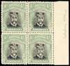 1/- Head Die IIIB, perf 14, toned paper. Right-hand marginal block of four in black and (greener) dull blue-green, unmounted o.g. Oswald Marsh's pencil endorsement on the selvedge, ‘Salisbury 2/9/20’. Scarce multiple, ex Gibbs, Vestey and Spivack. SG 272b, AH 4(A)