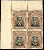 2/- Head Die IIIB, perf 14, toned paper. Upper left corner block of four, unmounted o.g. SG 273, AH 13