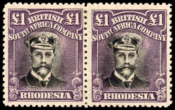 Rhodesia £1 SG 279 black and deep purple pair mint