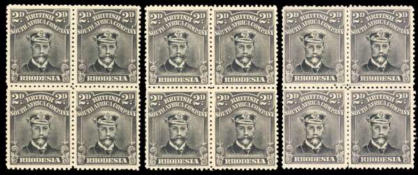 Rhodesia 2d SG 292 three blocks mint