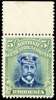 5/- Head Die IIIB, perf 15, white paper. Top marginal example in deep blue and yellowish green, hinged on the selvedge only, the stamp unmounted o.g. Ex Spivack. SG 321, AH 14b