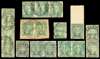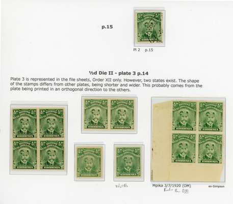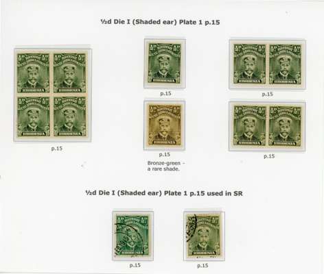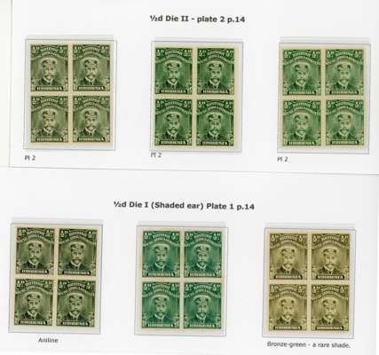 ½d balance group, one Hagner sheet plus display material from Andrew Wilson's collection. Includes Specimen, group of ‘imperf between stamp and interpanneau margin’ items, multiples with bronze-green; a few used