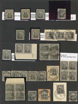 2d balance group on two Hagners. 25 mint with three pairs, some better including pair with vignette shift to left, and SG 258; and a small group of used with some postmarks