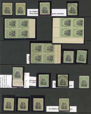 5d balance lot on two Hagners. Mint including Die I three blocks; Die II five singles; Die IIIB four blocks, imprint pair and sixteen singles. Used with SG 212, 227, 263/4 (3) and 264 vertical strip of four. Condition a little mixed