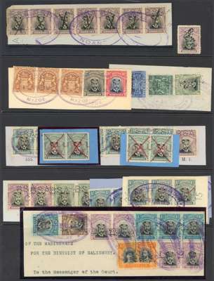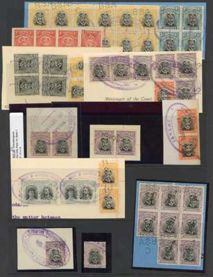 Revenues. Admiral pieces (36 items) on three Hagner sheets with some fine multiples and combinations, including scarcer values to 10/- with 2d, 4d, 10d, 7/6d strip of three. Almost all have some significance, the condition well above average