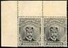 2d Head Die II, perf 14. Upper left corner pair in grey-black and ‘tarnished silver’, brown crackly gum (as appropriate for this printing) which is unmounted. Handpainting to right of cap, especially evident on the right stamp. Splitting between side selvedge and left stamp. SG 220 group, AH 5
