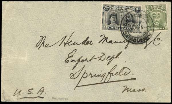 Rhodesia ½d Admiral and 2d Double Head on 1916 cover to USA
