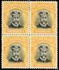 3d Head Die II, perf 14, O.g. block of four in black and orange-yellow, fine but for an area of missing gum. Ex Peggie. SG 222, AH 6
