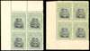 5d Head Die II, perf 14. Blocks of four in black and bluish green and black and bright green. The former an upper left corner block of four, unmounted o.g; the latter a lower left corner block of four large part o.g. (a trifle patchy in places), with hand-painting above cap on all four stamps. SG 226a, 227, AH 5, 3