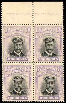 Rhodesia 6d SG 228 imprint block with position 5 Snowstorm mint