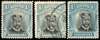 1/- Head Die II, perf 14. Large part o.g. example with part vertical printer's mark at left (part removed by perforations); used example, centred right, with the full mark, and large part o.g. example with good vignette shift to right. SG 233, AH1