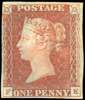 1841 1d Red-brown “Black plate” Pl.11. Unused (FE)