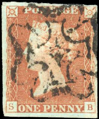 1841 1d Red-brown Pl. . Used four margin example (SB) cancelled by a well struck distinctive Channel Islands MC. Scarce cancellation. Spec. B1(1)te. Cat £7500.