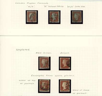 1841 1d Red-brown. A fine study containing thirty three examples including ten covers. An attractive study containing odd cancellations, worn plates varieties etc, mostly four margin with crisp cancellations. (33)
