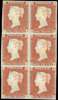 1841 1d Red-brown Pl.45. Unused o.g. block of six