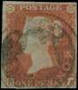 1841 1d Red-brown (Alphabet II) Pl.165. Used four margin example lettered EK cancelled by a well struck Mail Bag seal. Illustrated on Pg.136 of Danzig & Goldsmith. Scarce cancellation on this issue.