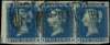1841 2d ‘Violet-blue’ thicker lavender tinted paper. strip three used.