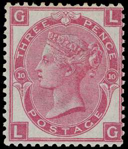 1873 3d rose Pl.10. Very fine unused large part o.g. example lettered LG. Scarce plate, difficult to find so fine. SG103 Cat. £875