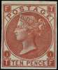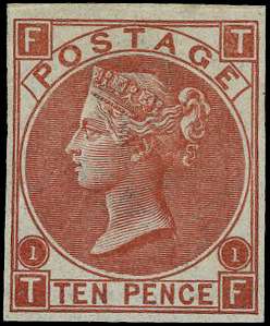 1867 10d red-brown Pl.1. Very fine large part unused o.g. imperforate imprimatur lettered TF. Scarce, only 22 possible examples. SG112var. Cat. £5000