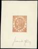 1880 2s brown Pl.1. Superb Jean de Sperati forgery proof lettered KJ, printed in brown on stout white card (50 x 67mm), signed at foot below impression. Usual violet ‘Sperati/11/Reproduction’ handstamp on reverse. SG121var