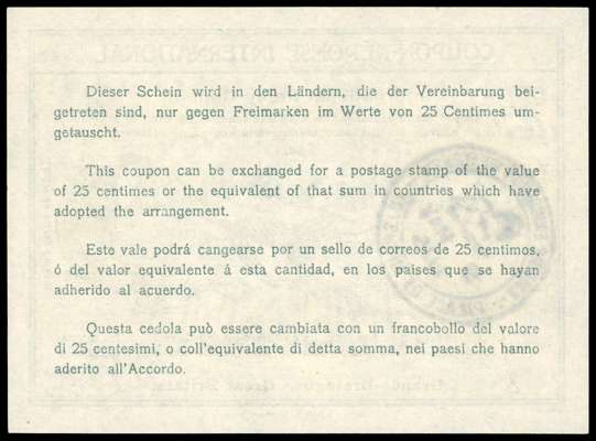 1925 3d UPU International reply coupon Palace of industry First day of issue