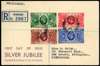 1935 ½-2½d Silver Jubilee. Very fine used set of four each stamp tied to a commemorative envelope by crisp Windsor, Berks cds's for the first day of issue MY.7.1935. Sent registered to Birmingham and bearing a perforated photographic label of Windsor Castle on reverse. Scarce & desirable usage. SG453/6. Booth Cat £775.