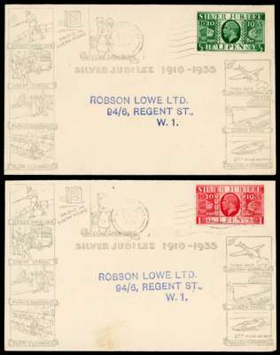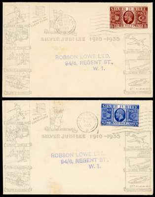 1935 ½-2½d Silver Jubilee. Very fine set of four illustrated commemorative envelopes, produced by Robson Lowe Ltd bearing the new issues, tied by neat London S.W.1. machine cancels for MY.07.1935, the first day of issue. A couple small tone spots but an attractive set of first day covers. SG453-6.