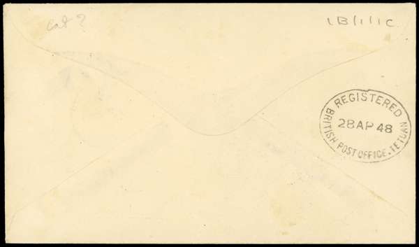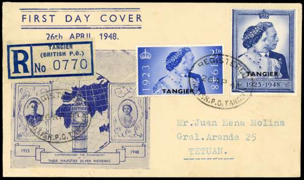 1948 (26 Apr) Royal Silver Wedding 2½d and £1 used on registered illustrated first day cover