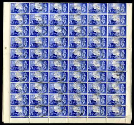 CHANNEL ISLANDS: 1948 (10 May) Third Anniversary of Liberation 1d and 2½d, complete sheets of one hundred twenty, all neatly cancelled with first day of issue ‘GEORGE TOWN/JERSEY’ cds. Fine and most unusual. C1-2