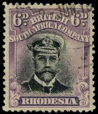 1913-7 6d Head Die II, perf 14. Used example in grey-black and dull purple with light CDS, showing the extremely rare R4/4 truncated 'waxed moustache', from Plate 1R-T. Very fine, showing virtually full gum, just five examples (all used) known. SG 229 group, AH 7