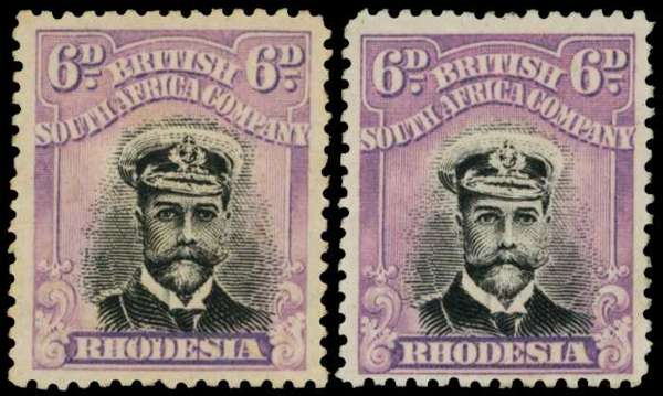 1913-7 6d Head Die II, perf 14. Two mint examples from the Handbook 14(D) group in black and pale dull purple 9shades). SG 228 var, AH 14(D)