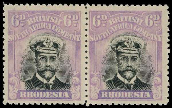 1913-7 6d Head Die II, perf 14. Mint pair from the last state of Plate 5 in black and deep mauve, showing a pinkish frame and very worn portrait. A scarce multiple. SG 228 group, AH 16