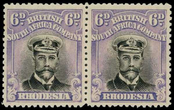 1922-4 6d Head Die IIIB, perf 14, white paper. Mint pair, the left stamp showing R4/1 large RHODESIA, gum naturally patchy and 'puddled', fine. SG 295a, AH 25 Var