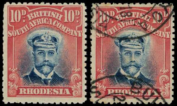1913-7 10d Head Die II, perf 14. Mint example in steel-blue and rose-carmine, some short perfs at left, unmounted o.g.; also a fine used example, ex Strong. SG 231 group, AH 7