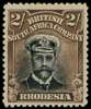 1913-7 2/- Head Die II, perf 14. Large part o.g. example in black and (deep) bistre-brown, showing untidy handpainting on King's left cheek. SG 234 group, AH 4 ('very scarce')