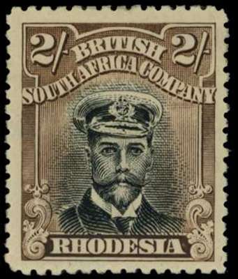 1918-21 2/- Head Die IIIB, perf 14, toned paper. Large part o.g. example in (deep) black and (deep) brownish sepia from the 'chocolate' group, dark frame shade. SG 273b group, AH 11(A)