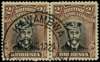 1922-4 2/- Head Die IIIB, perf 14, white paper. Fine used pair in grey-black and reddish brown, Kawambwa CDS 31 AUG 22. Attractive. SG 301 group, AH 15a